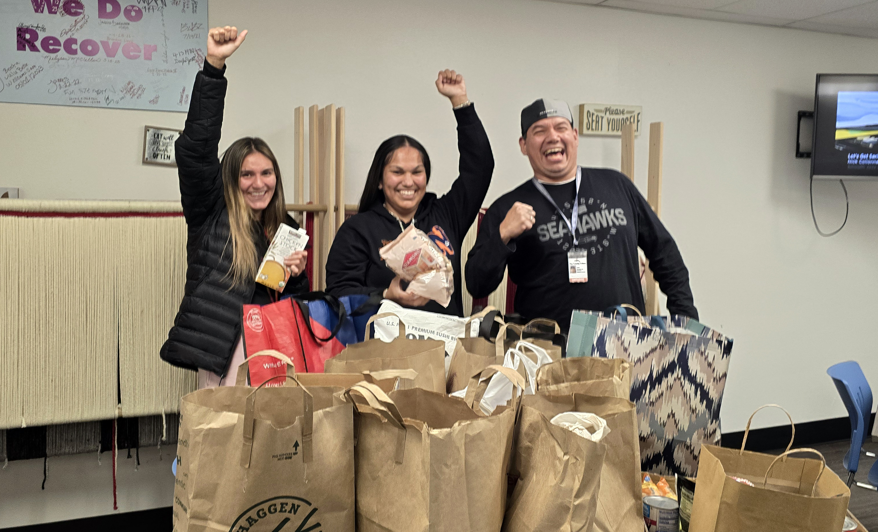 The Tulalip Recovery Resource Center. A quick tour of the facility revealed an impressive program to support people recovering from fentanyl addiction. The Recovery Center regularly refers people to Hope for Homies for additional assistance. Kali, Jacqueline, and Avel helped me bring in the donations and happily took a moment to pose for a picture for our Newsletter.