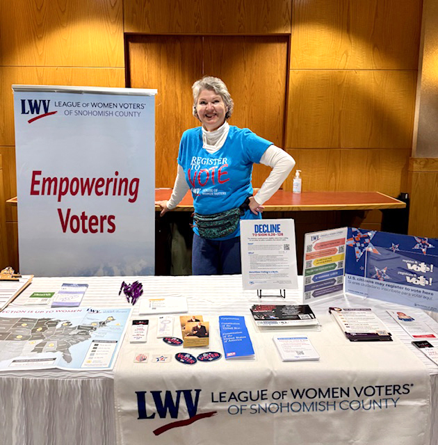 We had an adjacent room full of secular community partners, including LWVSC and ACLU. Before and after the event, participants were invited to visit the partners and find out how they can connect to efforts to stand together against oppression. Many individuals stopped by our table and thanked the League for being an advocate for fair elections over these many decades. The favorite take away was a copy of our US Constitution.